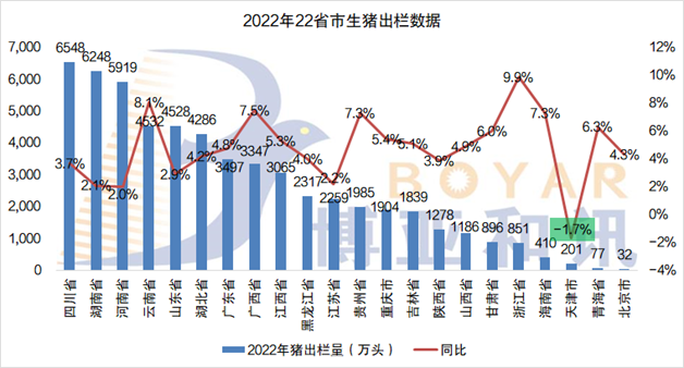 【BOYAR整理】2022年生猪出栏四川第一、年末存栏河南第一