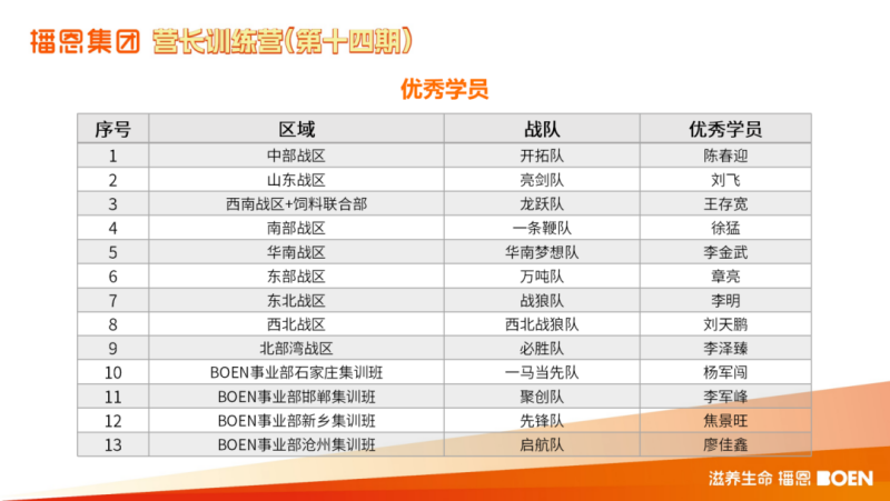 播恩集团营长训练营(第十四期)的圆满开展,不仅为营长们提供了一个学习与交流的高端平台,更为播恩集团注入了新的活力与智慧。展望未来,这些经过精心培训的营销精英们将携手并进,共同开创播恩集团价值营销的新篇章,为播恩、也为行业的繁荣与发展贡献新的力量。