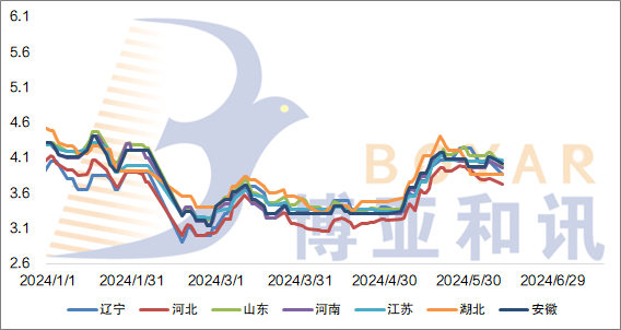 2024年6月11日部分省份鸡蛋价格趋势图