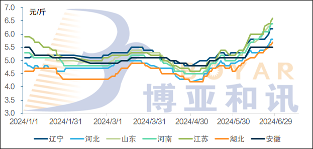 2025年6月19日部分省份鸡蛋价格趋势图