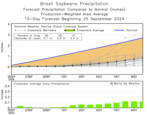 未来15天巴西大豆产区降雨预测图(2024.9.26)