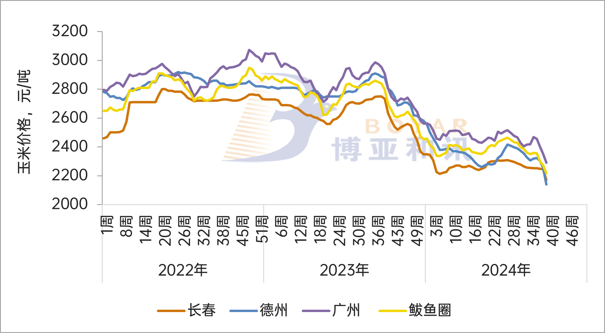 2022-2024年国内主要地区玉米价格走势-第39周